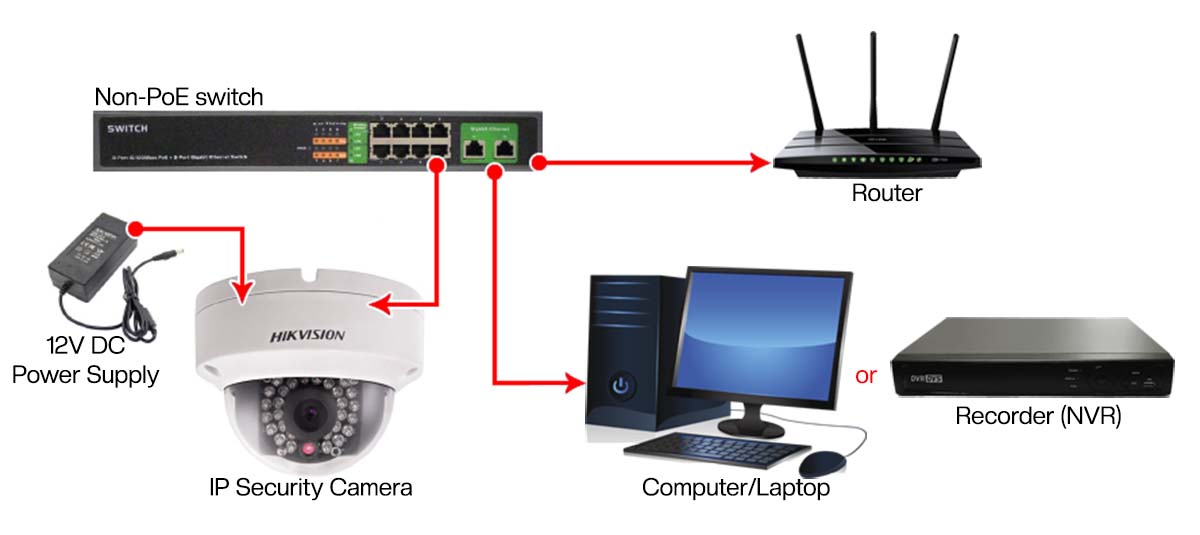 2) نوع Non - POE و هي كاميرات لا تعتمد على كابل ال Ethernet لتاخذ الطاقة فهي تحتاج الى مزود طاقة 12DC ليزودها بالطاقة .